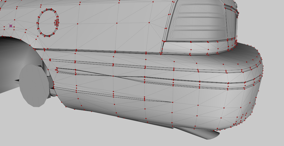 Wenn ein Modell detaillierter ist als ein Standardfahrzeug, werden L0 und L1 sehr wahrscheinlich mehr Polygone haben als die Standardfahrzeuge. Eine angemessene Polygonanzahl für ein detailliertes L0-Modell liegt zwischen 100k und 150k. Das L1-Modell eines detaillierten, aber optimierten Fahrzeugs wird höchstwahrscheinlich eine Polygonanzahl von etwa 30k bis 40k Polygonen haben.